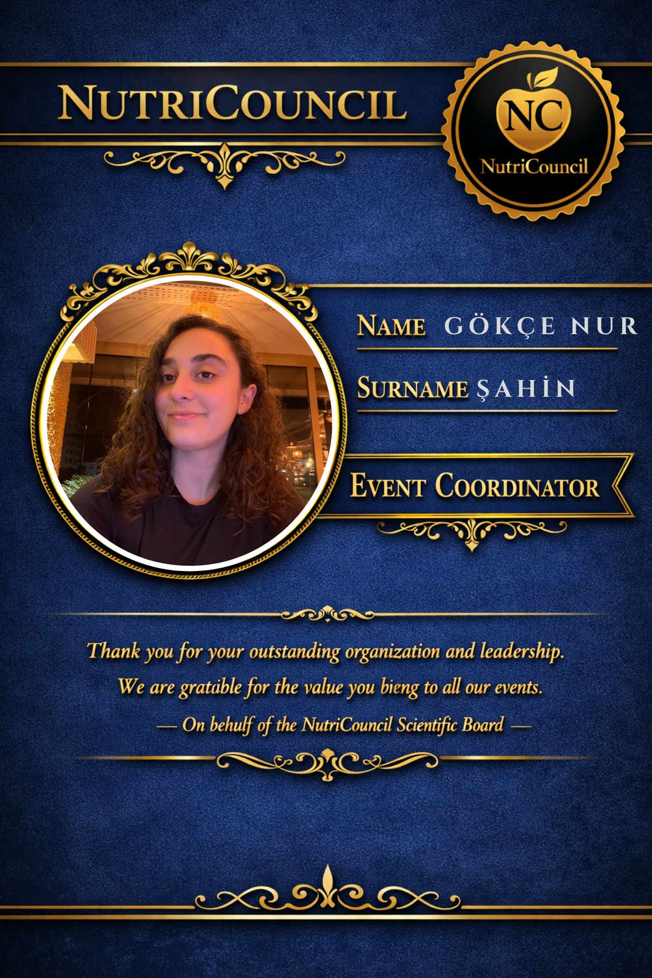 NutriCouncil’da üyeler ve programlar arasında şeffaf bir iletişim hattı kurulmasına katkı sağlıyorum; IBMC ve topluluk etkinliklerinde koordinasyonun sorunsuz ilerlemesine inanıyorum.