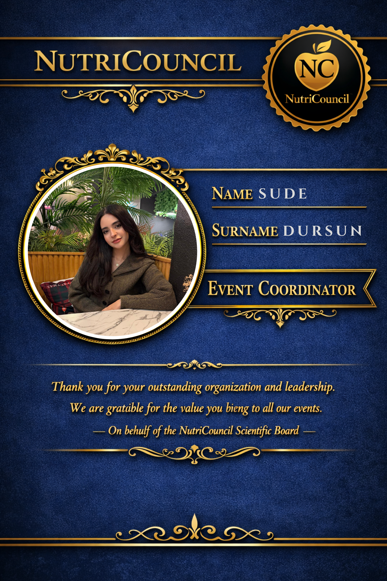 Bilimsel iletişimi genç öğrenci katılımıyla güçlendirmek istiyorum; NutriCouncil etkinliklerinde moderasyon ve içerik akışına katkı sunmayı önemsiyorum.