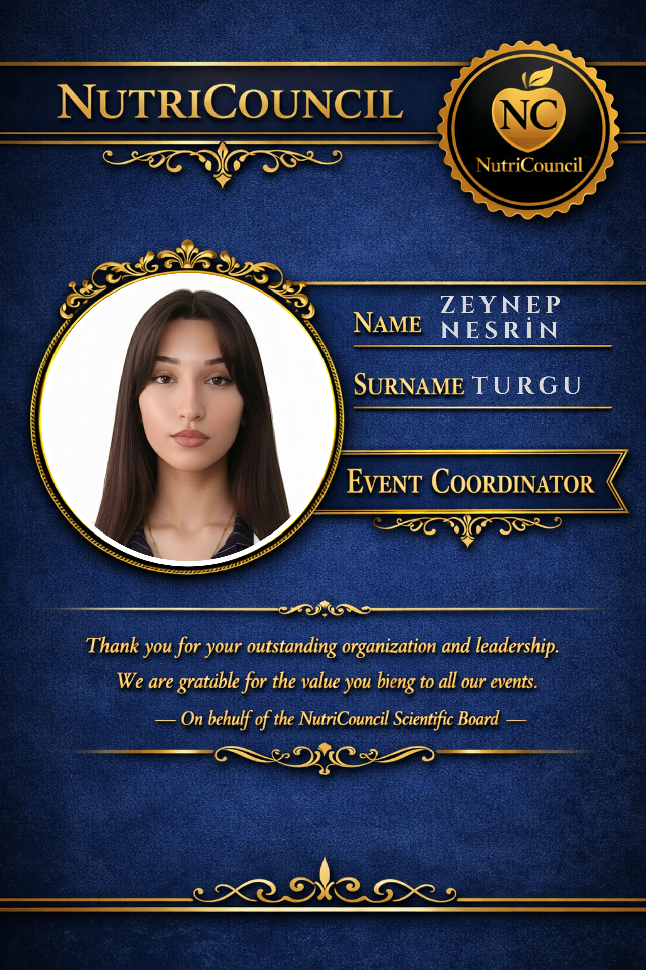 NutriCouncil’ın bilim temelli ve şeffaf duruşunu sahadaki öğrenci hareketliliğiyle buluşturmayı önemsiyorum; üyelere yansıyan aktarımın hızlı ve anlaşılır olmasına katkı veriyorum.